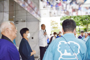 手拍子をしたり、お神輿を担いでロータリーを一周したりと、