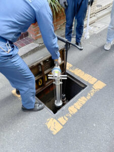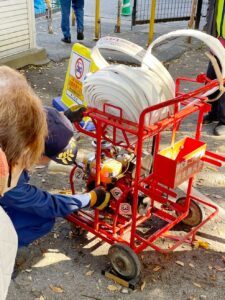 防火水槽、消火ポンプの使い方について丁寧なご指導を受けました。