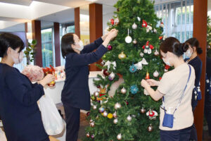 12月を前に、少し早めではありますが、一階ラウンジにクリスマスツリー、