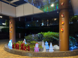 正面玄関前にはイルミネーションの飾りつけを行いました。