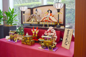 一階ラウンジにひな人形を飾りました。