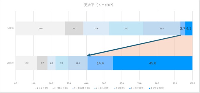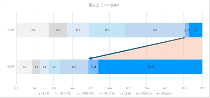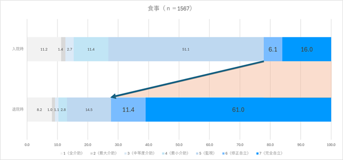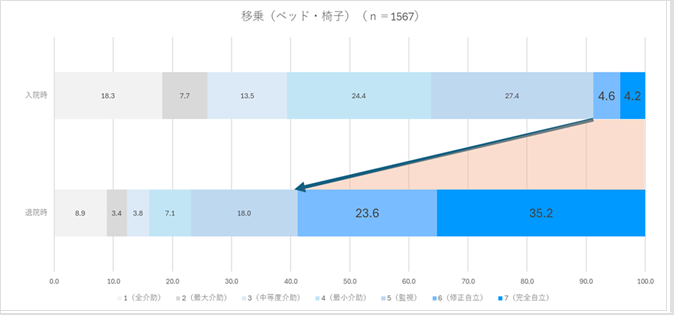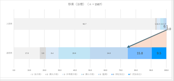 入院時と退院時の点数を比較することで、リハビリテーションによる回復の度合いを確認することができます。